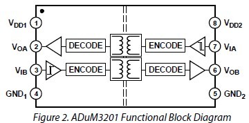 The ADUM3201ARZ is a dual-channel, digital isolator. It is based on the Analog Devices, Inc. iCoupler technology. Combining high speed CMOS and monolithic transformer technology,it can provide outstanding performance characteristics superior to alternatives such as optocoupler devices. It is suitable for size-critical multichannel isolation, SPI interface/data converter isolation, RS-232/RS-422/RS-485 transceiver isolation and digital field bus isolation.