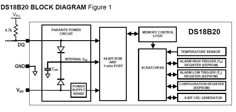 The DS18B20+ is designed as one kind of programmable resolution 1-Wire digital thermometer. This device can be used in thermostatic controls, industrial systems, consumer products, thermometers, or any thermally sensitive system. And it has an 8-bit CRC stored in the most significant byte of the 64-bit ROM and also generates an 8-bit CRC value using the same polynomial function shown above and provides this value to the bus master to validate the transfer of data bytes.